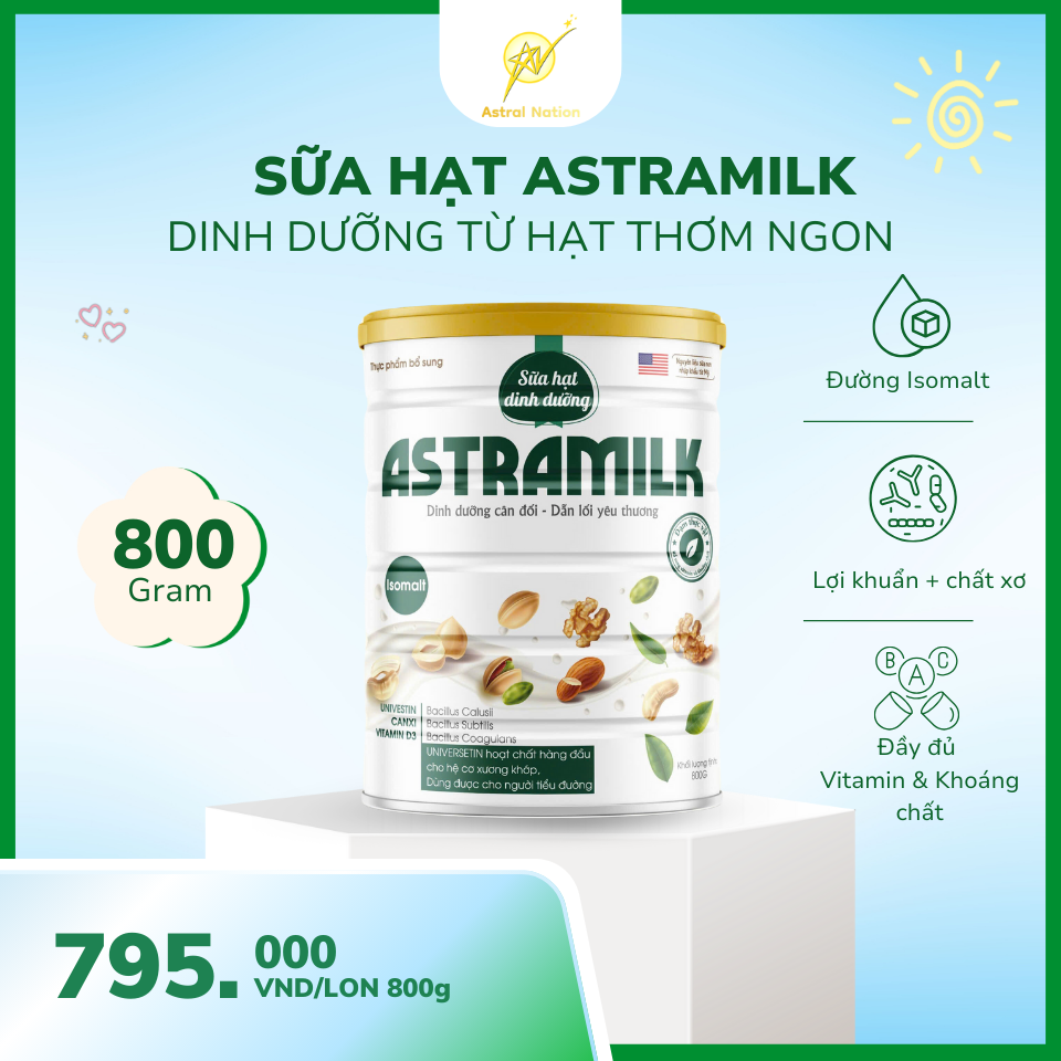 Astramilk tự hào là sản phẩm sữa hạt tiên phong kết hợp toàn diện dinh dưỡng từ các loại hạt, ngũ cốc, cùng hệ dưỡng chất tối ưu, mang đến giải pháp chăm sóc sức khỏe toàn diện cho mọi gia đình.